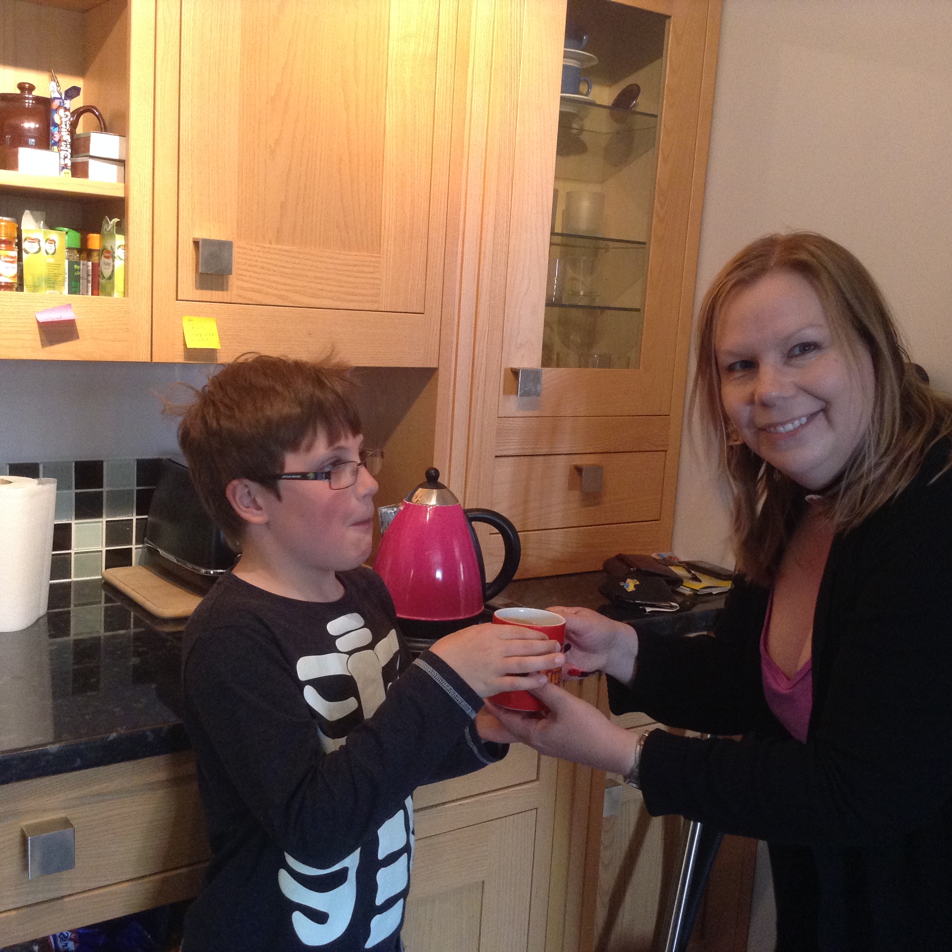 9:45 am: Where was I? Where’s my head? Oh My Word, what’s happened to my kitchen? Did you know I hate mess? That’s one of the reasons I don’t like baking. Look at the state of it! But I keep ploughing on. There’s not much point in tidying up in between cakes, now, is there. And I had an alien visitor too…