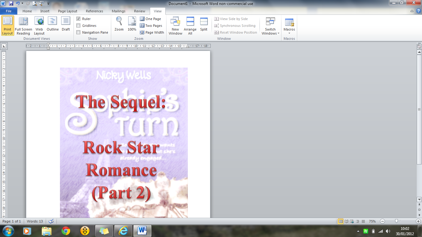 At this time, my second master piece is just over 149,000 words long. That would translate into something like 400 pages in paperback. Somebody has already told me that this very exciting: a real ‘doorstop read’ like we used to enjoy in the ’80s and ’90s. Personally, I am very partial to a long, fantastic read that really involves you and captivates you, and that’s why I have written another one. (Weighing in at just over 135,000 words, Sophie’s Turn would be about 380 pages long.)